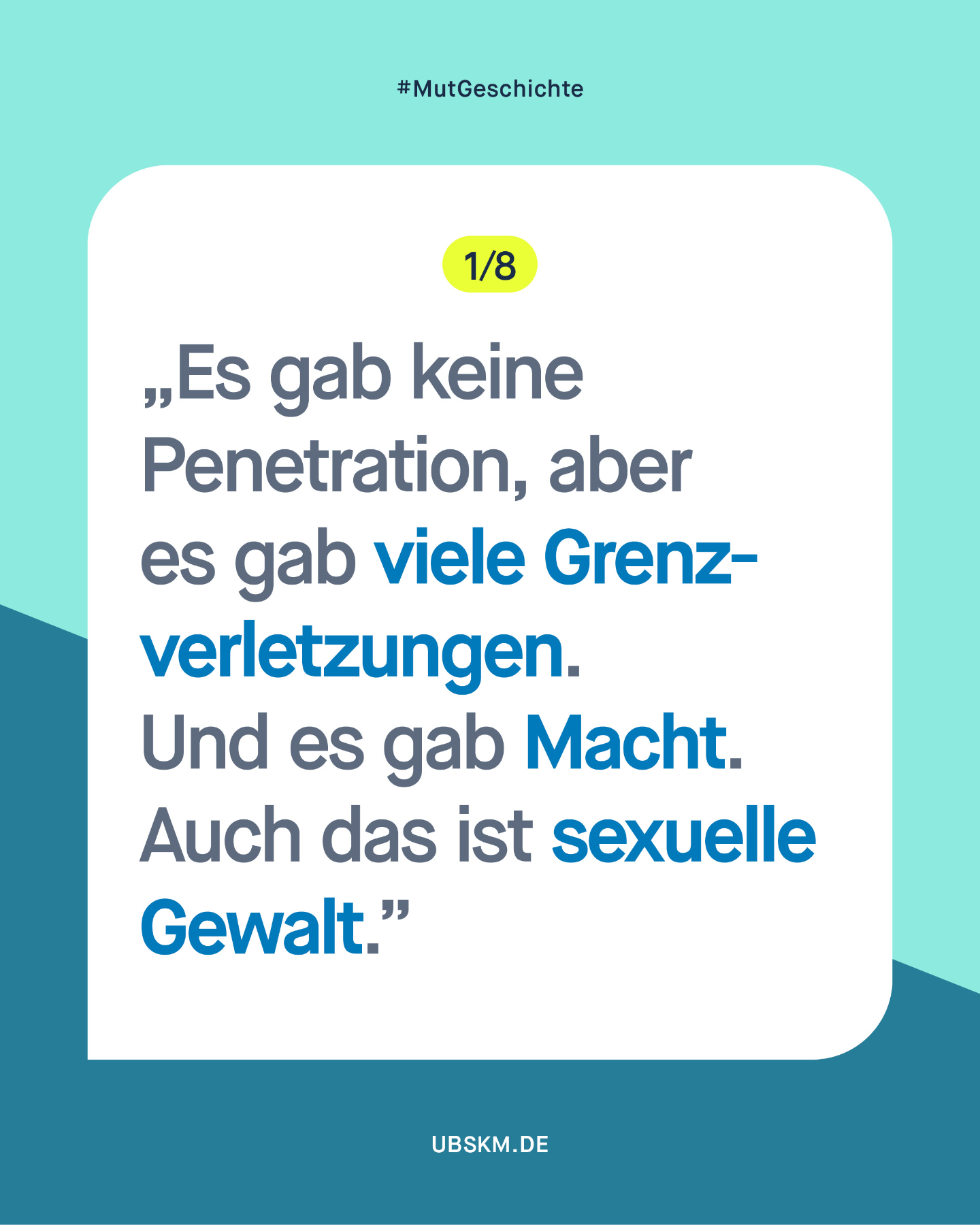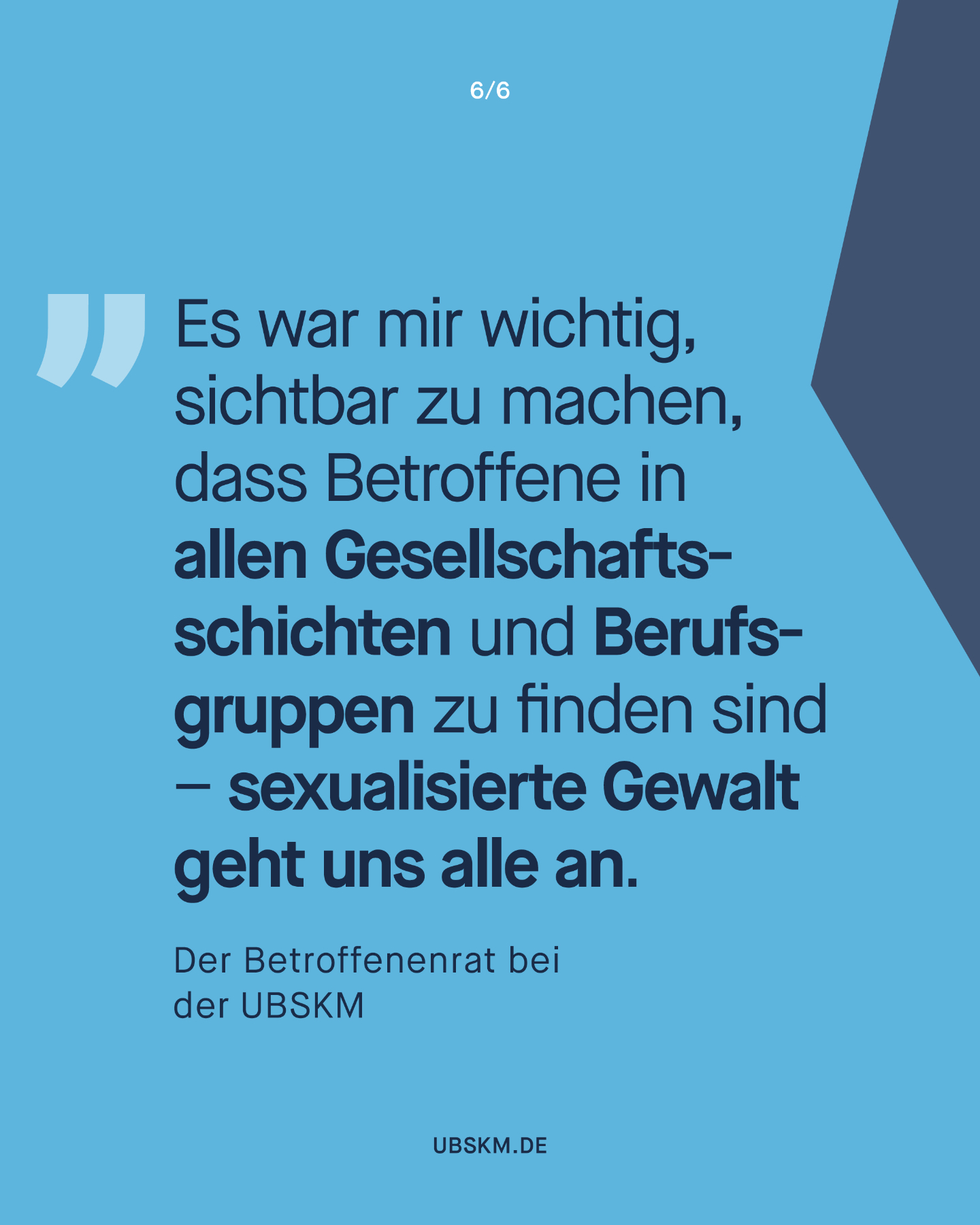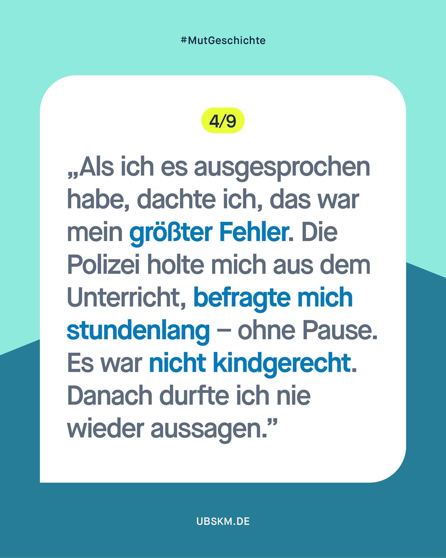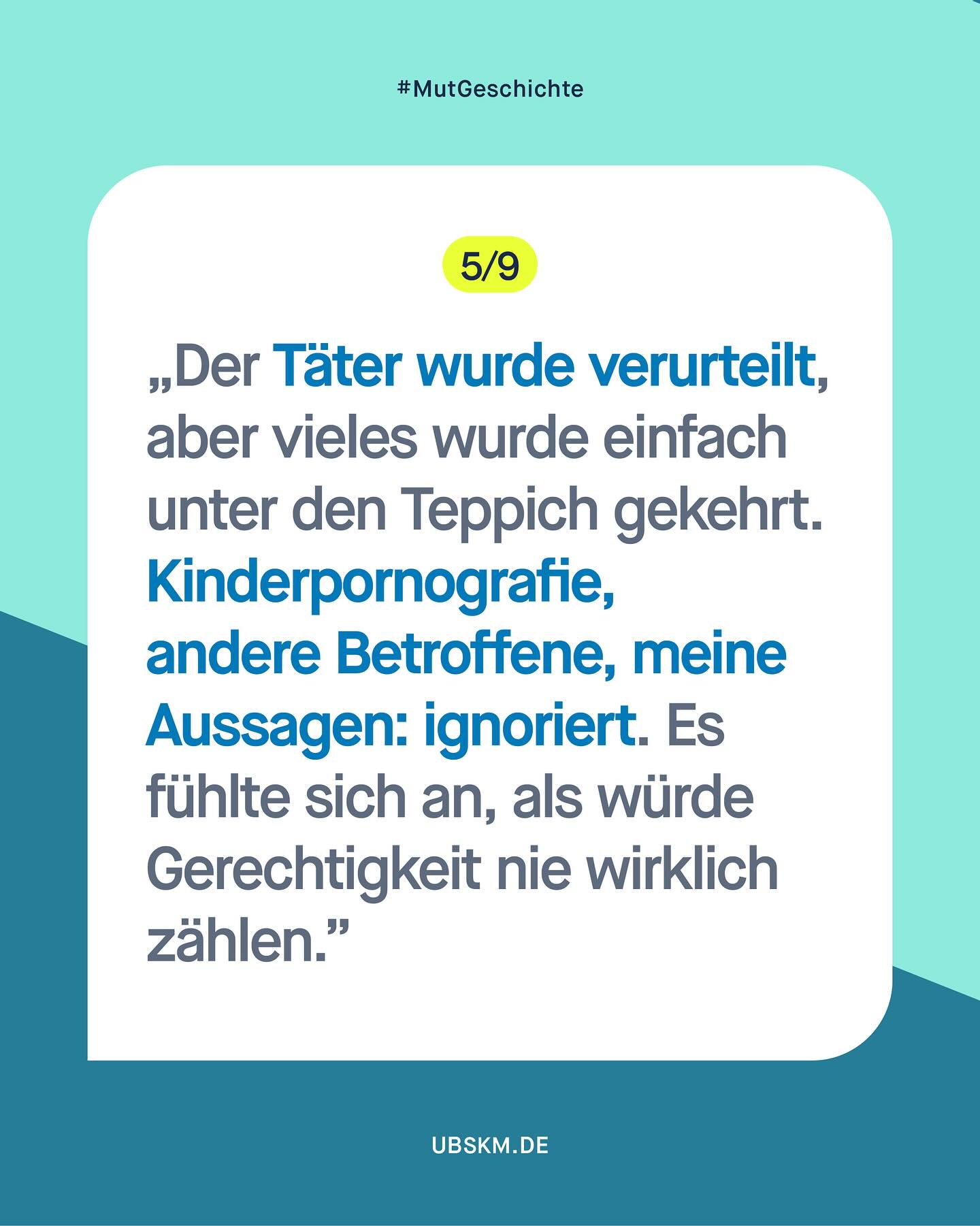 „Sexuelle Gewalt ist nichts Abstraktes, irgendwo weit weg, auf irgendeinem Campingplatz oder auf irgendwelchen Servern – sexuelle Gewalt ist ganz nah dran und kann überall passieren. Es ist Zeit, den Gedanken daran nicht mehr wegzuschieben. Und sich zu fragen: Was könnte ich tun, wenn ich damit konfrontiert bin?“