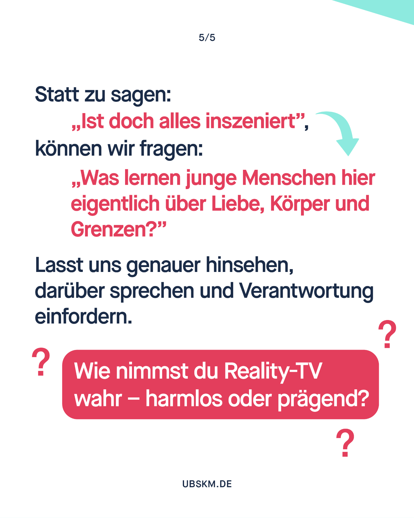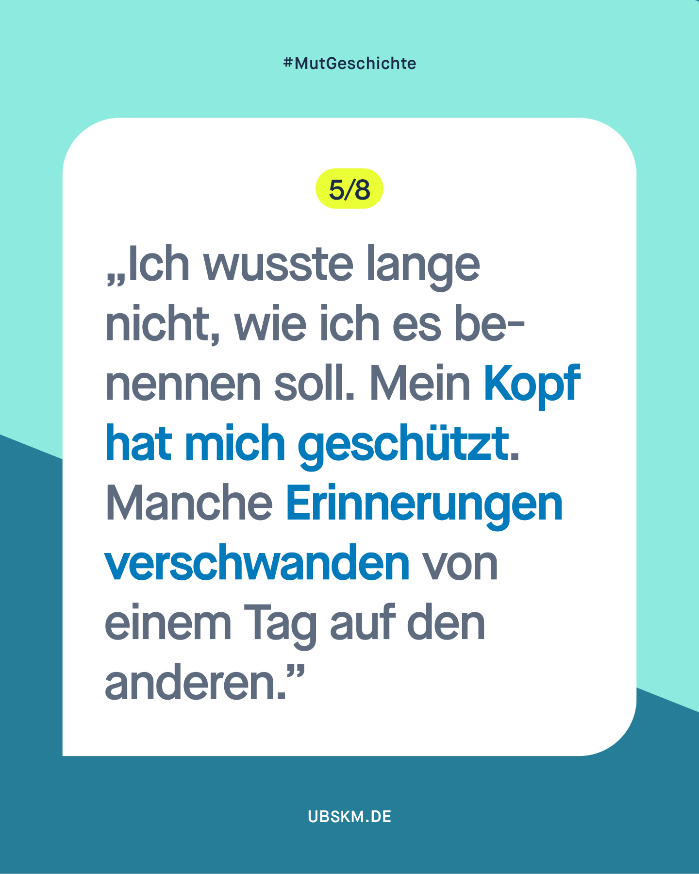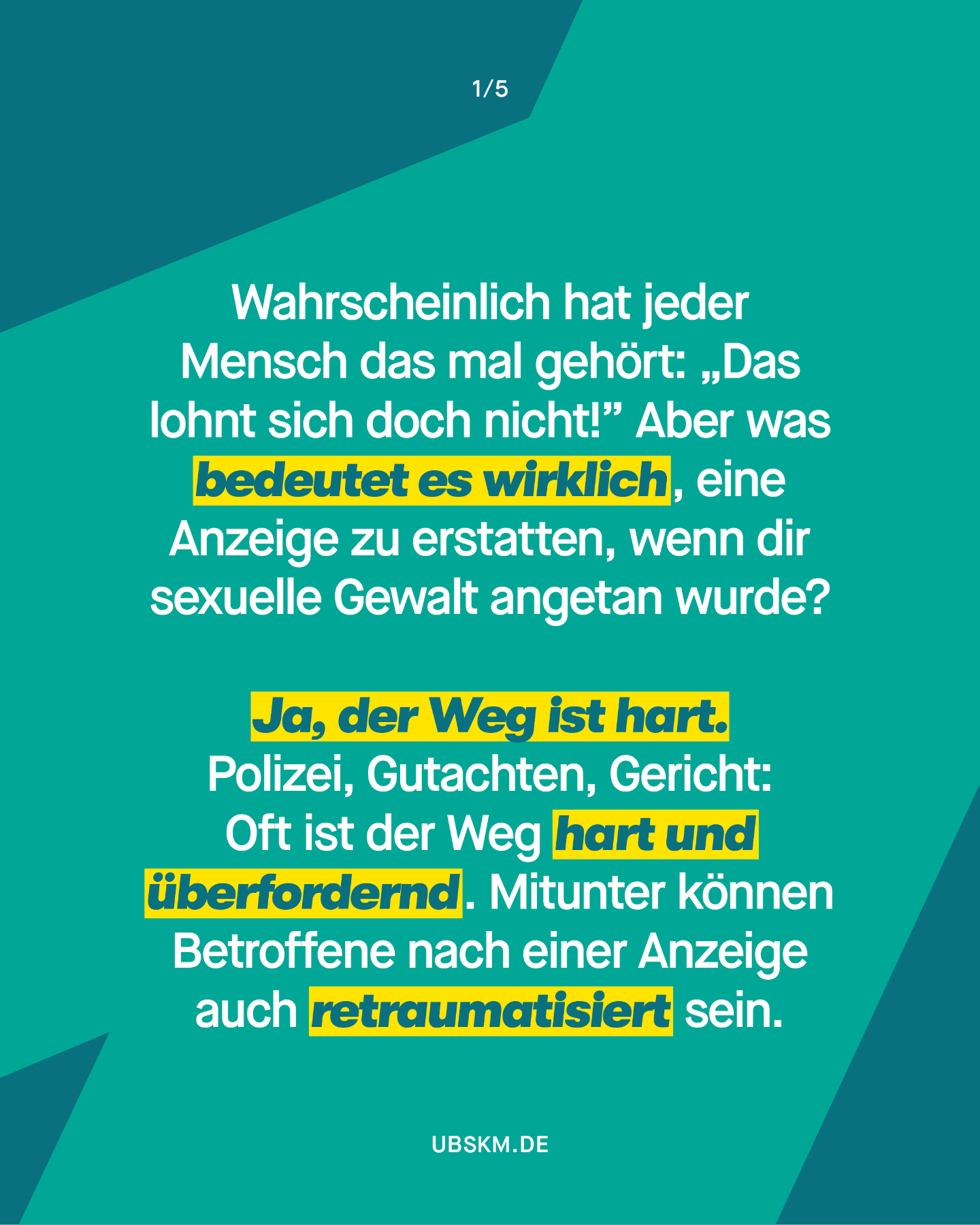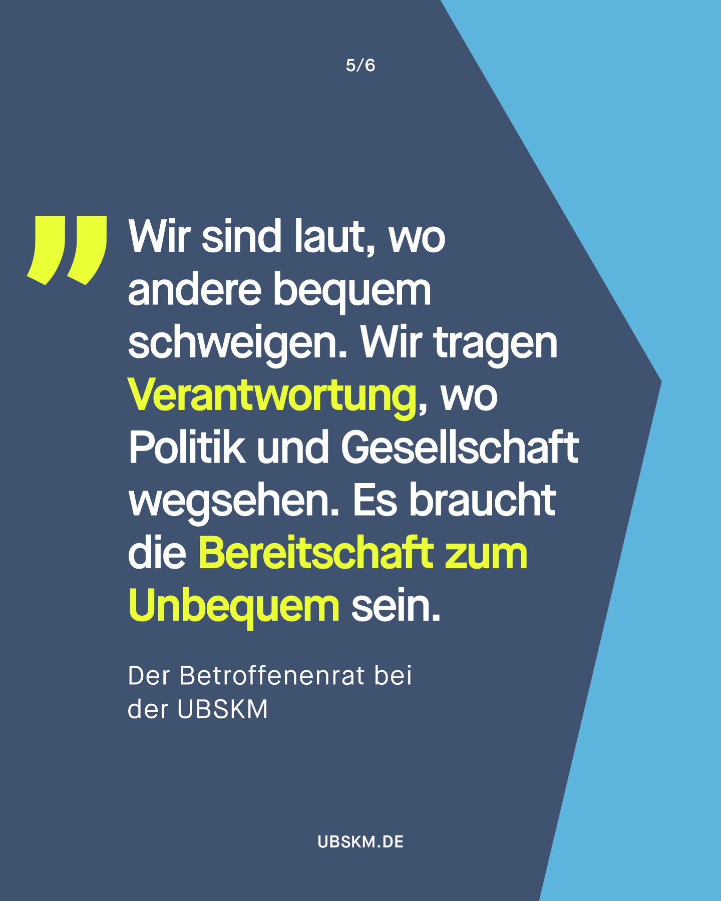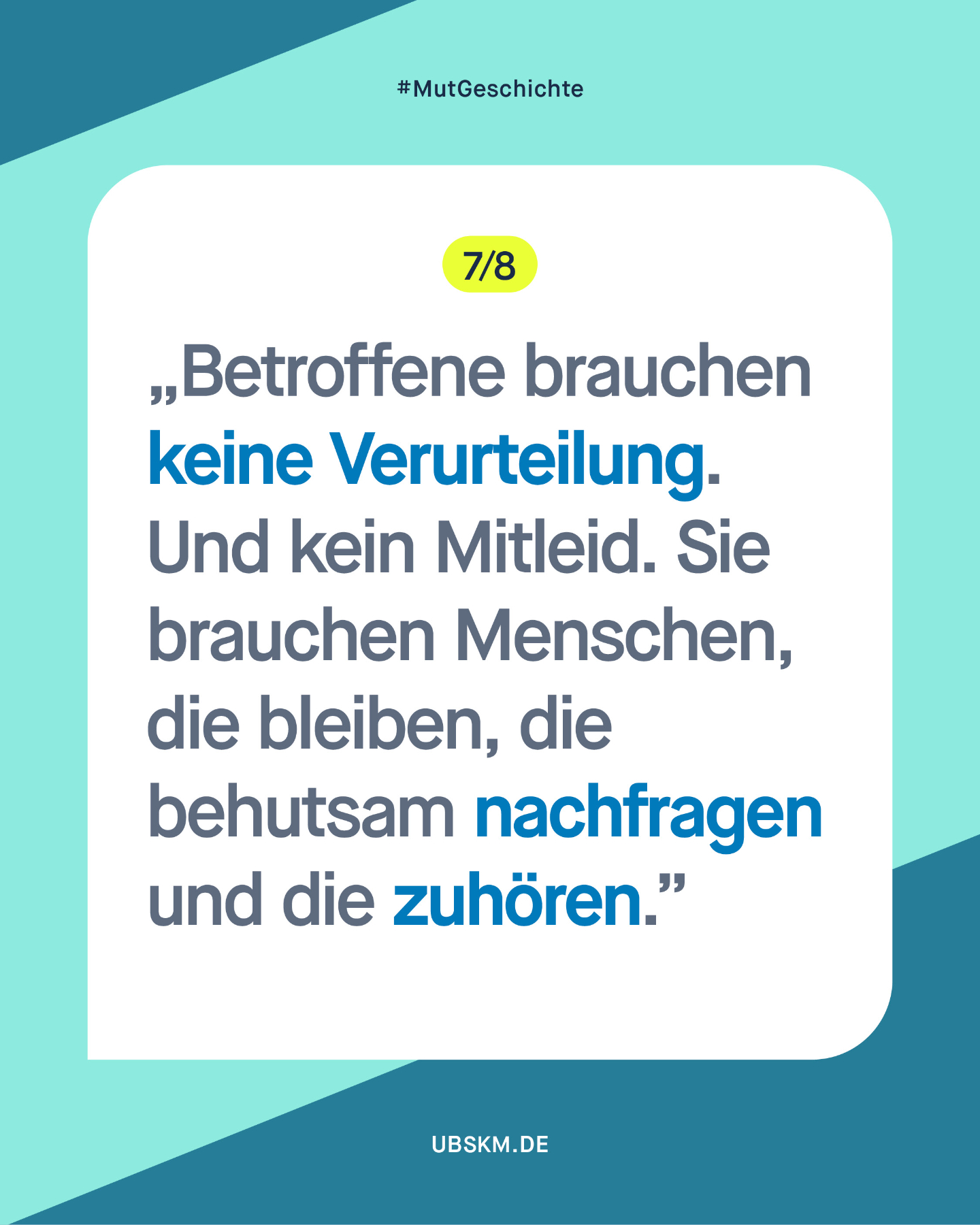 „Sexuelle Gewalt ist nichts Abstraktes, irgendwo weit weg, auf irgendeinem Campingplatz oder auf irgendwelchen Servern – sexuelle Gewalt ist ganz nah dran und kann überall passieren. Es ist Zeit, den Gedanken daran nicht mehr wegzuschieben. Und sich zu fragen: Was könnte ich tun, wenn ich damit konfrontiert bin?“