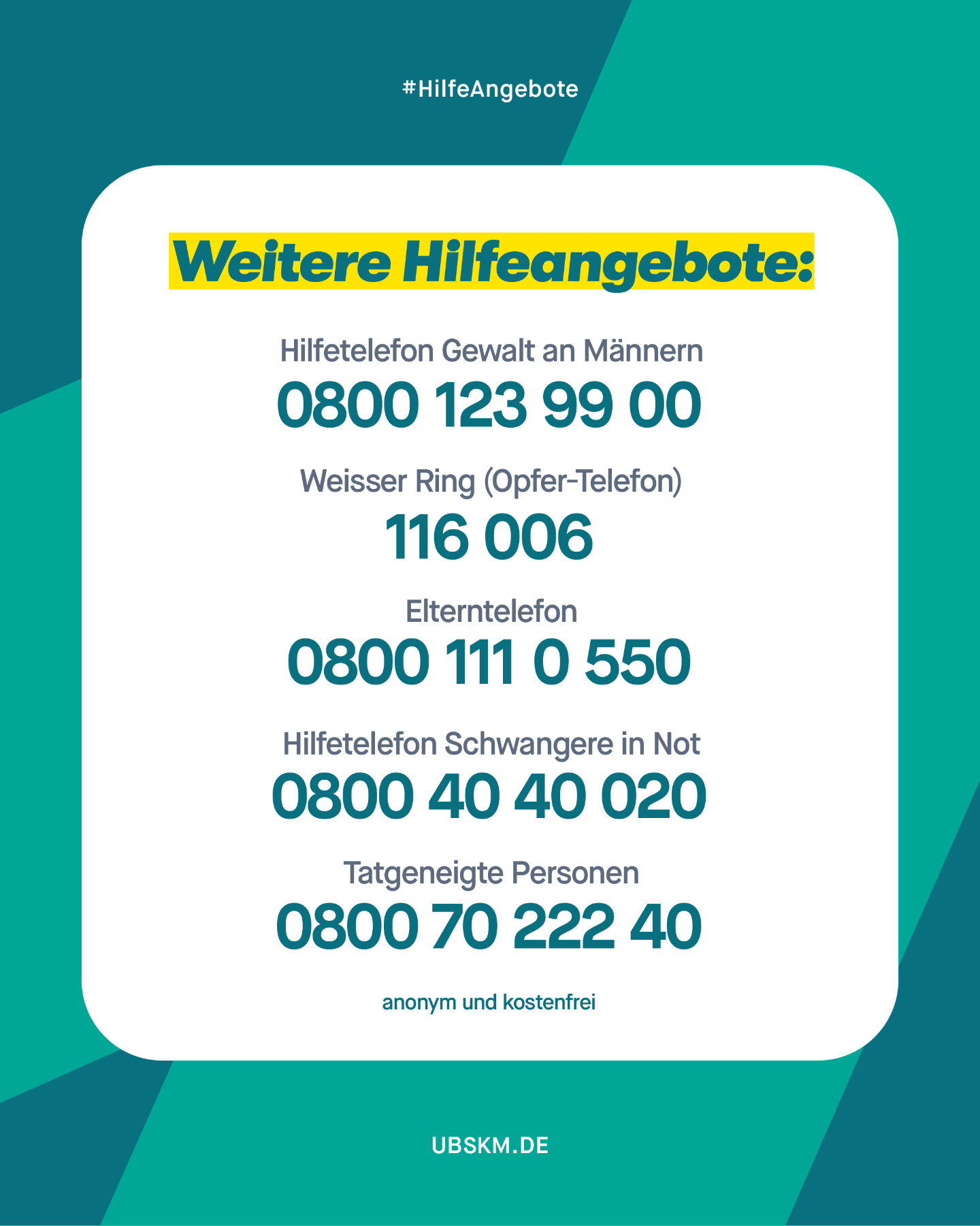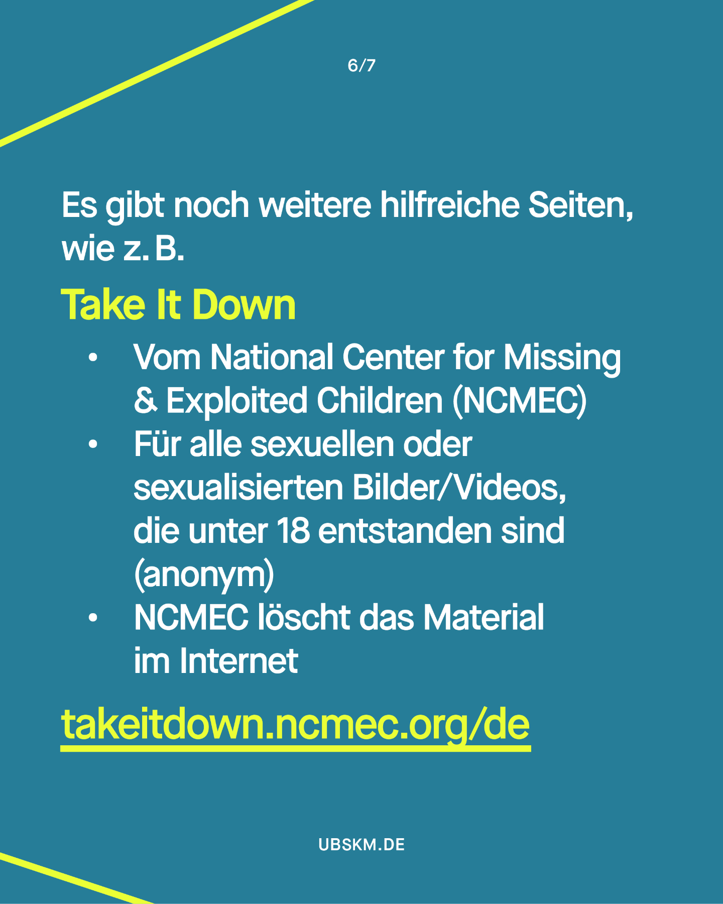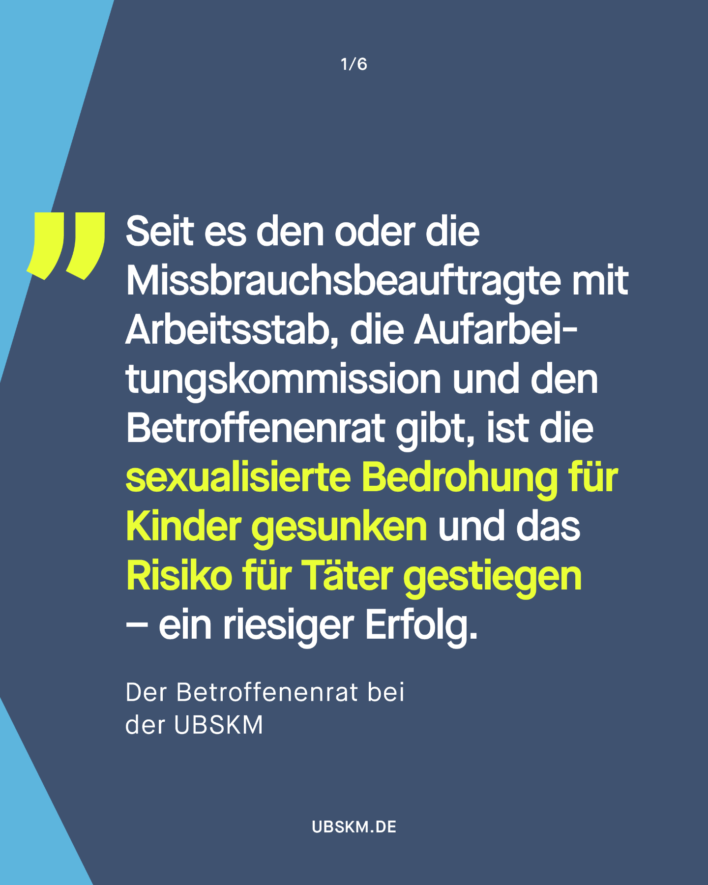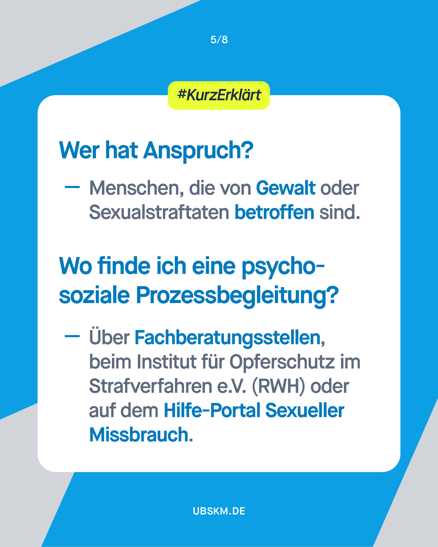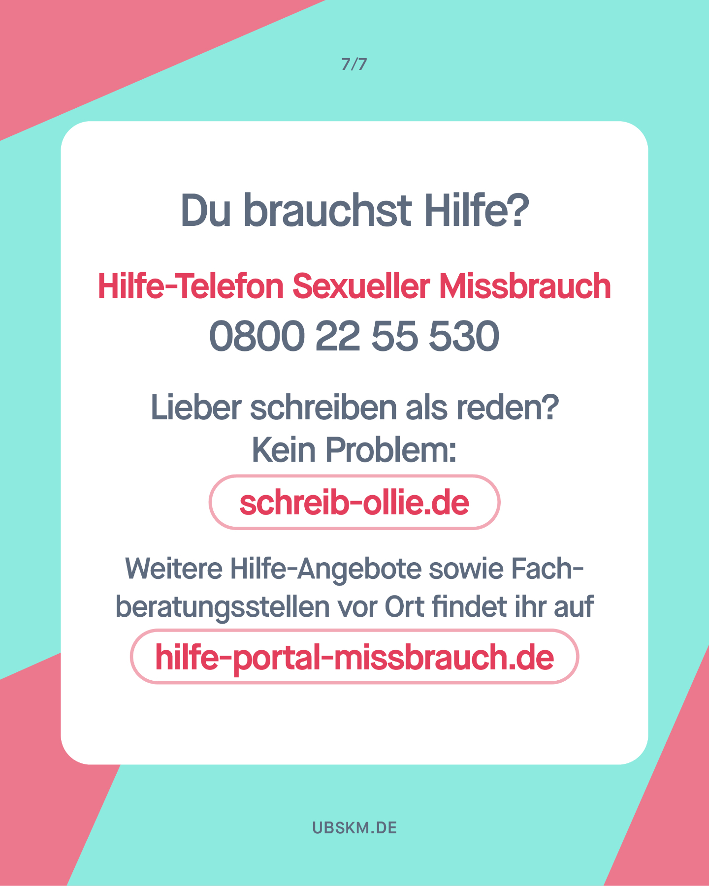 Hier finden Sie Informationen zum Amt und zur Arbeit der Unabhängigen Bundesbeauftragten gegen sexuellen Missbrauch von Kindern und Jugendlichen (UBSKM), zu Schutz- und Hilfeangeboten, zu Prävention, Forschung und Aufarbeitung sowie Materialien zum Download. Für Betroffene, Angehörige, Fachkräfte, Wissenschaftler:innen, Journalist:innen und alle, die sich für das Thema interessieren.