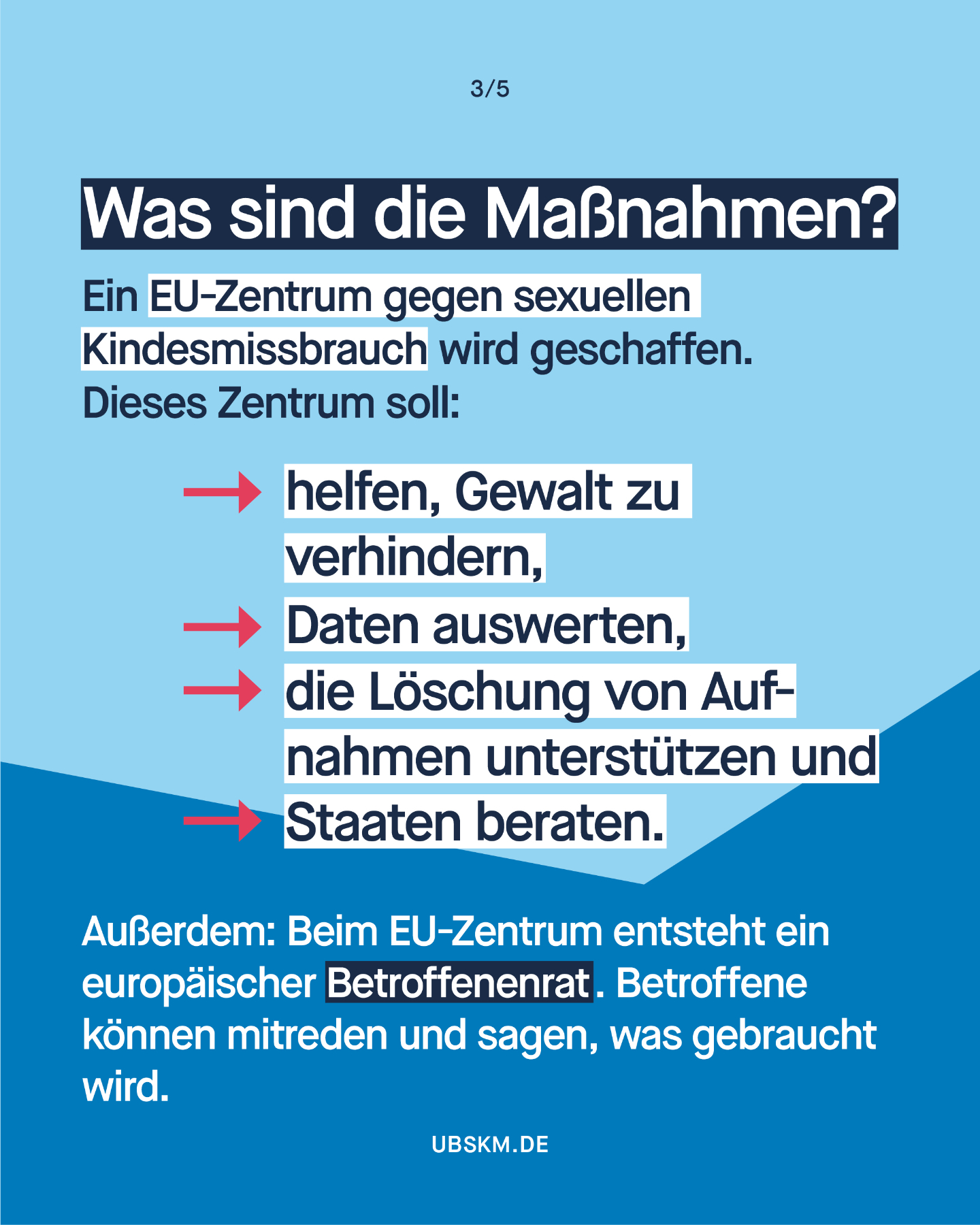 Hier finden Sie Informationen zum Amt und zur Arbeit der Unabhängigen Bundesbeauftragten gegen sexuellen Missbrauch von Kindern und Jugendlichen (UBSKM), zu Schutz- und Hilfeangeboten, zu Prävention, Forschung und Aufarbeitung sowie Materialien zum Download. Für Betroffene, Angehörige, Fachkräfte, Wissenschaftler:innen, Journalist:innen und alle, die sich für das Thema interessieren.