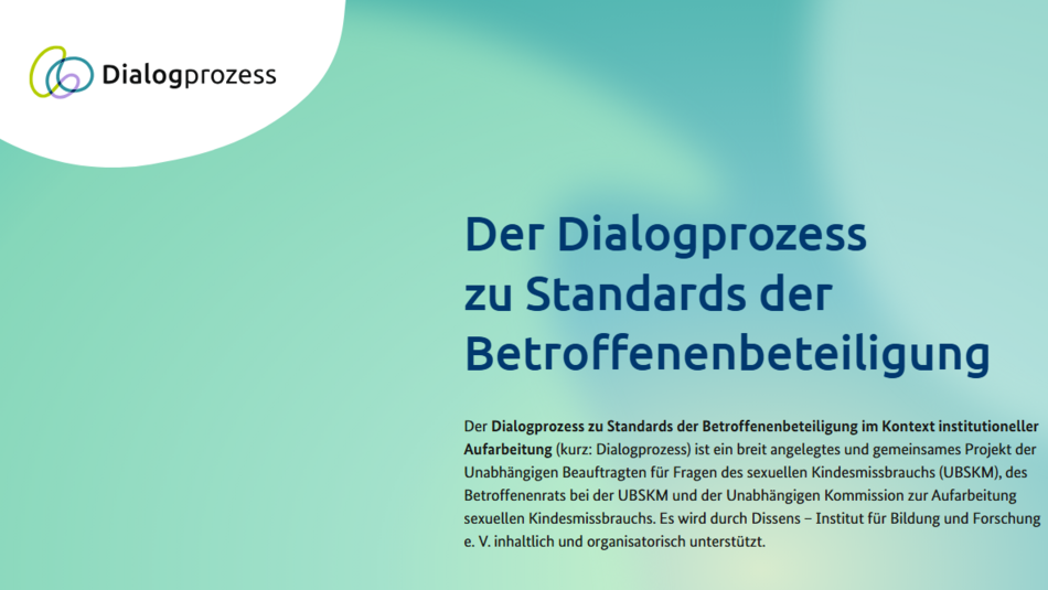 Der Dialogprozess dient der Entwicklung von Standards für eine umfassende, nachhaltige und sensible Partizipation von Betroffenen in institutionellen Aufarbeitungsprozessen.